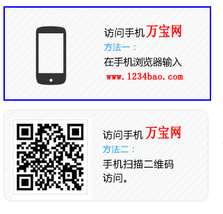 QQ手机浏览器地址栏输入 www.1234bao.com 或地址栏扫码